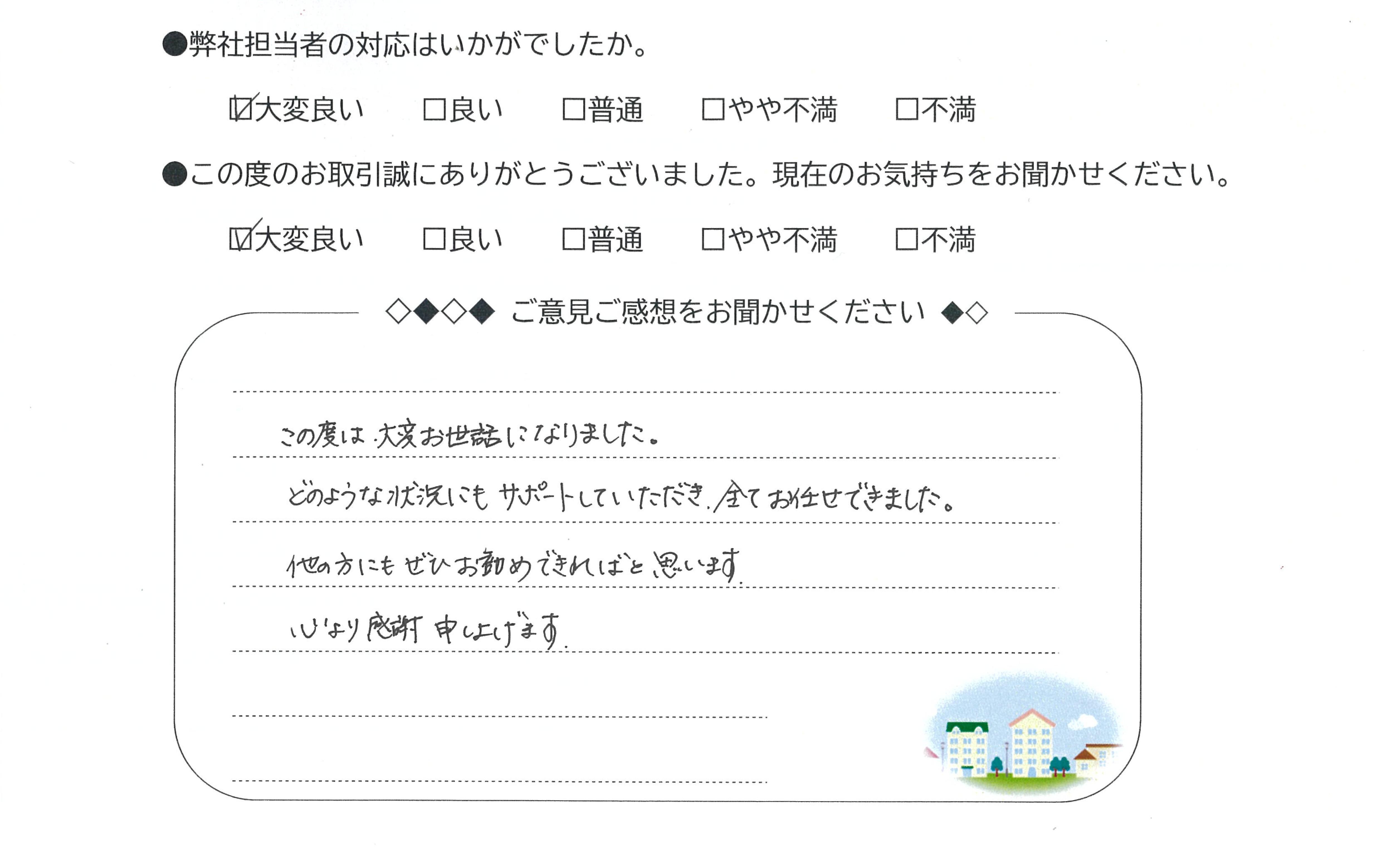 自宅マンション(分譲マンション)の賃貸開始時から売却まで大変お世話になりました。